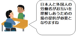 労働条件通知書は日本語、母国語で記載すればトラブルは少ないでしょう。日本のビジネスマナーは研修、OJTなどで身に着けてもらい教育環境も整えましょう。